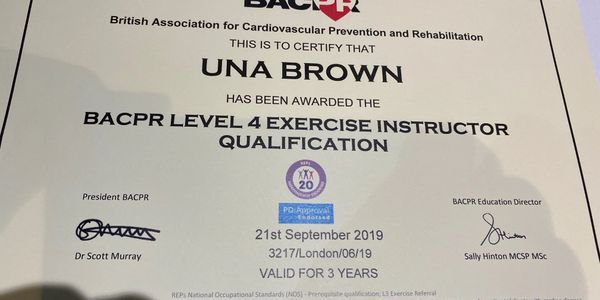 Qualifying me to train clients with any type of cardiac issue, including post operative surgical patients, One to One, within a group, home or community based